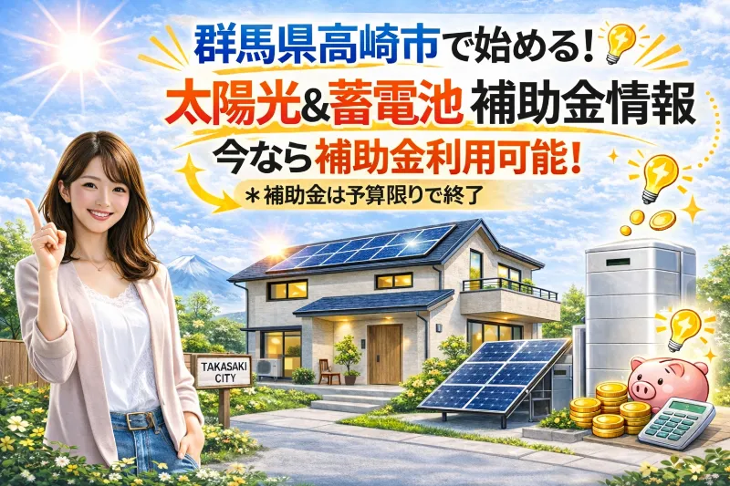 電気代2万円→5千円台は本当?補助金で太陽光発電と蓄電池を導入して電気代を安くする方法を解説 電気代が上がり続ける今、設置を検討する家庭が急増しています。高崎市では2026年現在、太陽光発電・蓄電池の導入を促進するために補助金を出しています。「...